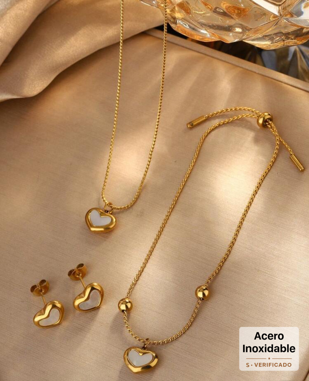 Acero inoxidable chapado en oro / 4piezas corazón