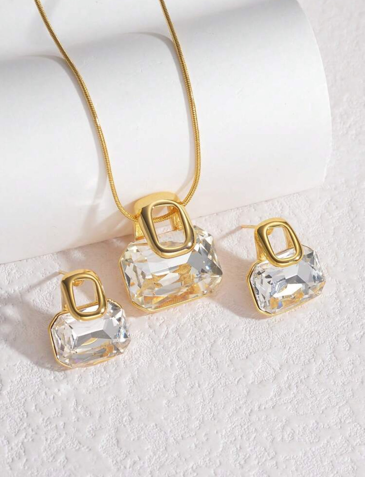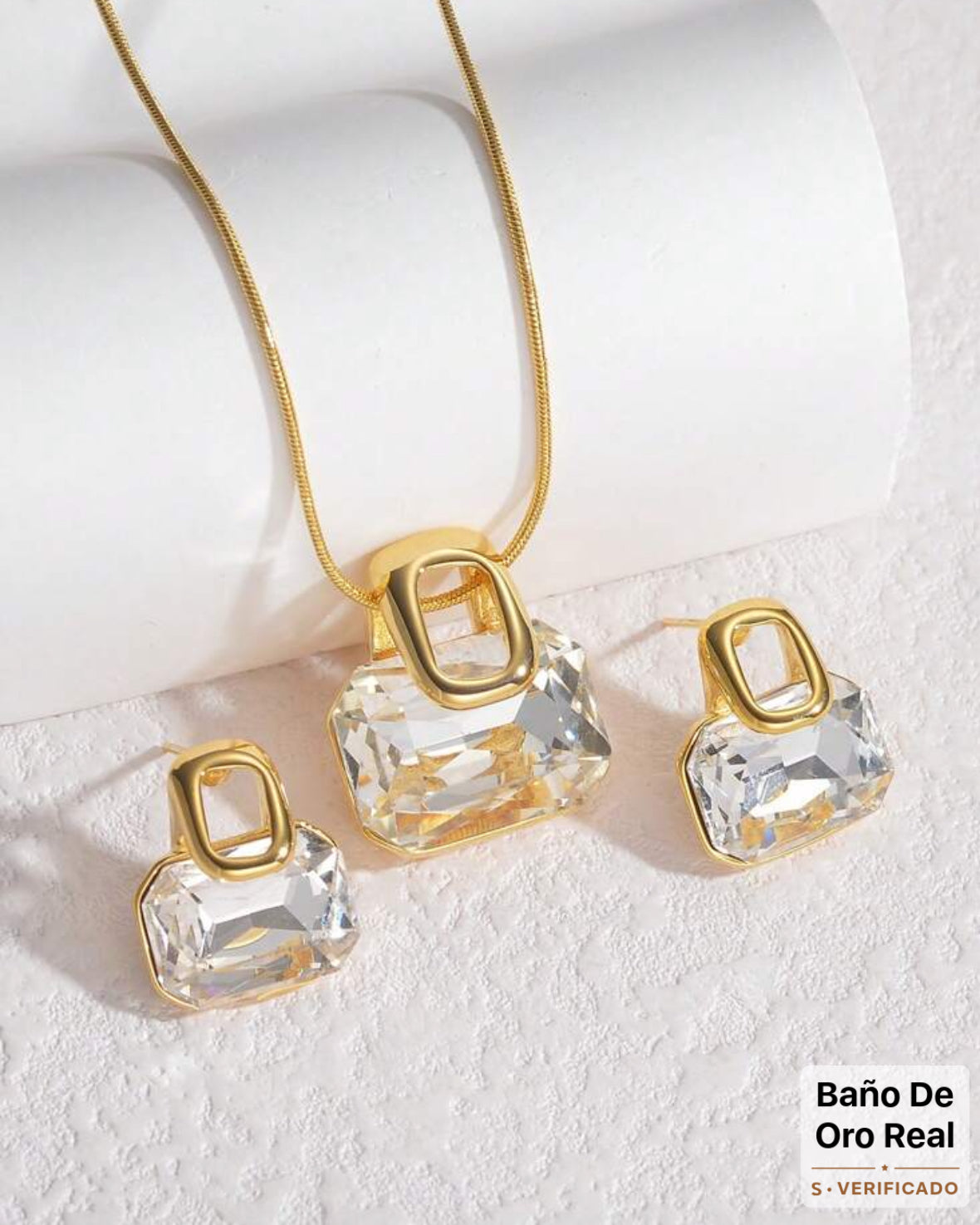 Acero inoxidable chapado en oro con circonita/ 3 piezas